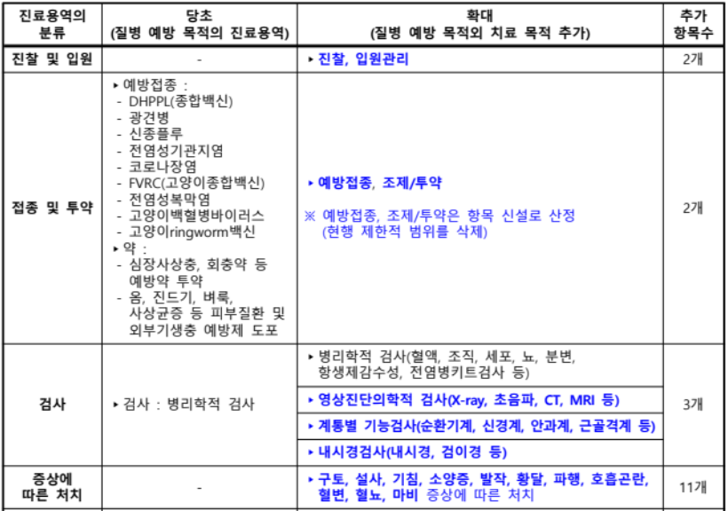 진찰, 투약, 검사 등 기본진료와 구토, 설사, 기침, 발작 등 증상에 따른 처치, 외이염, 아토피성 피부염, 심장사상충증, 결막염, 중성화 수술, 무릎뼈 탈구 수술 등 다양한 진료 항목들에 부가세가 면제가 되었습니다.