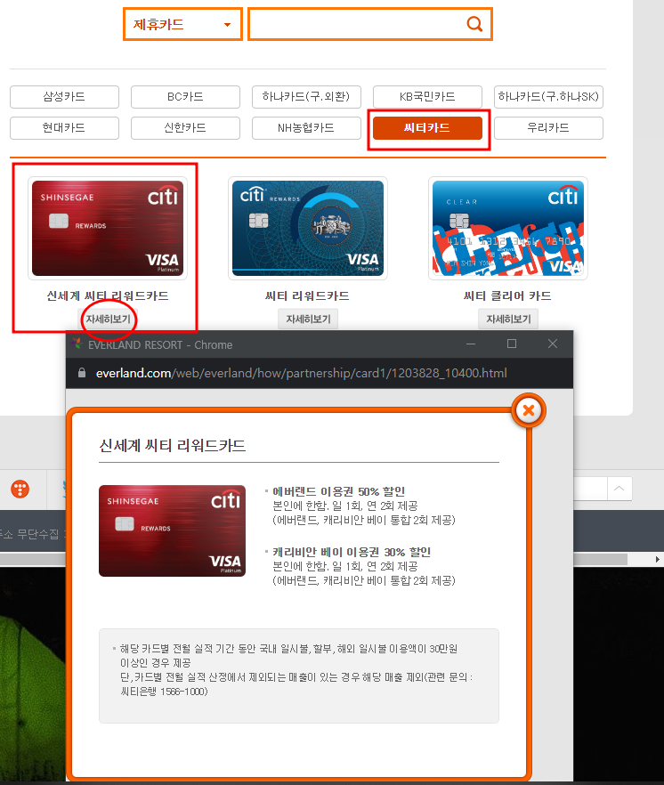 아래 이미지는 씨티카드의 카드 하나를 선택해서 보여드리는 예시 화면 입니다.