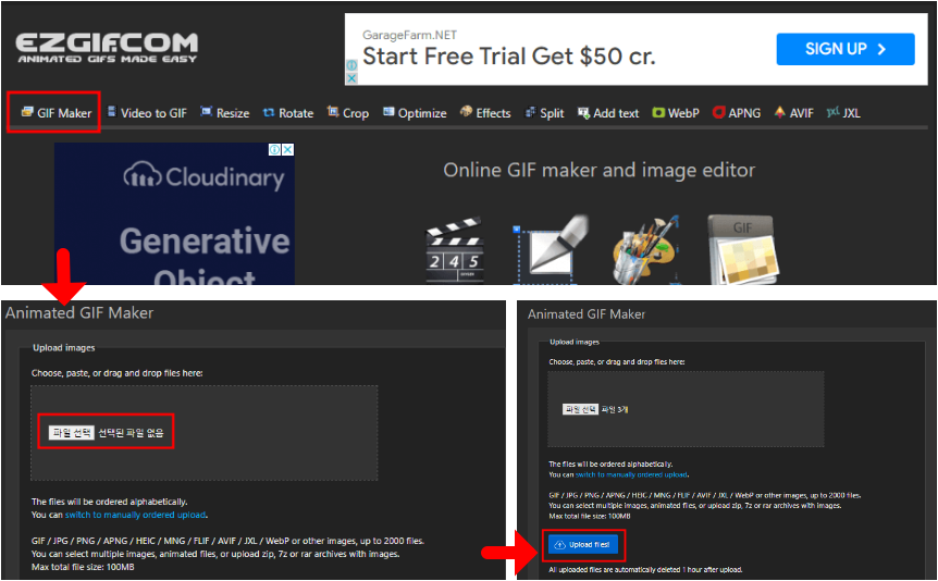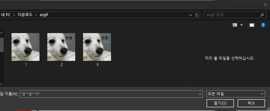 GIF Maker > 파일선택 > 세개의 파일 선택 > Upload file 순서로 진행 하시면 됩니다.