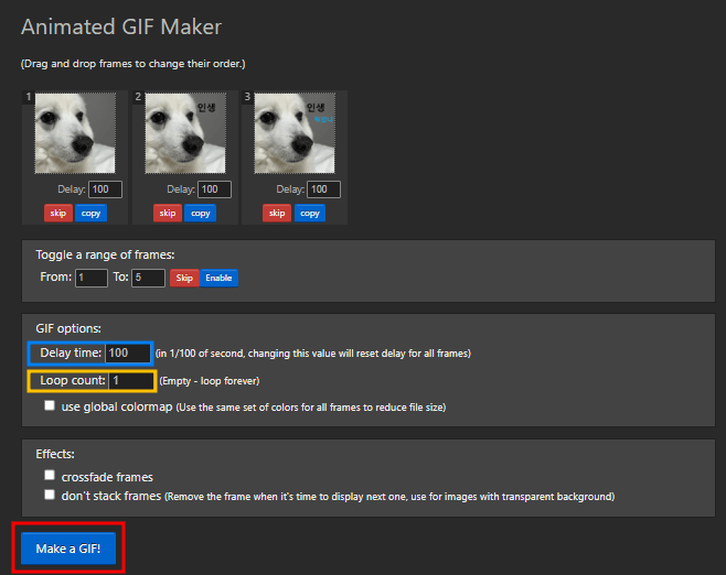 아래 소개해주는 사이트는 압축하는 기능이 있어서 타 사이트보다 좋습니다. GIF짤을 만드는 사이트들은 많지만 압축기능이 없는 사이트들이 많아서 아래의 Ezgif.com 을 제가 추천 하는 이유 입니다.