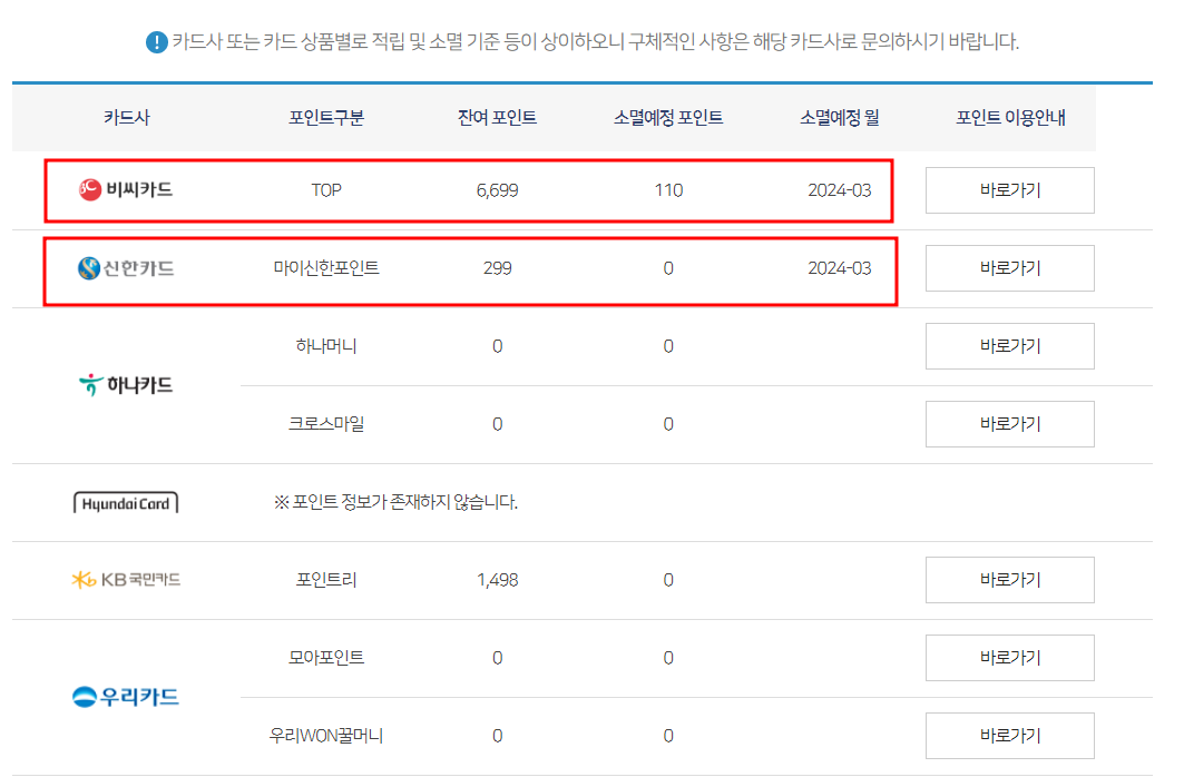 아래 순서를 따라서 흩어져 있는 카드 포인트들을 전부 조회할 수 있습니다.
