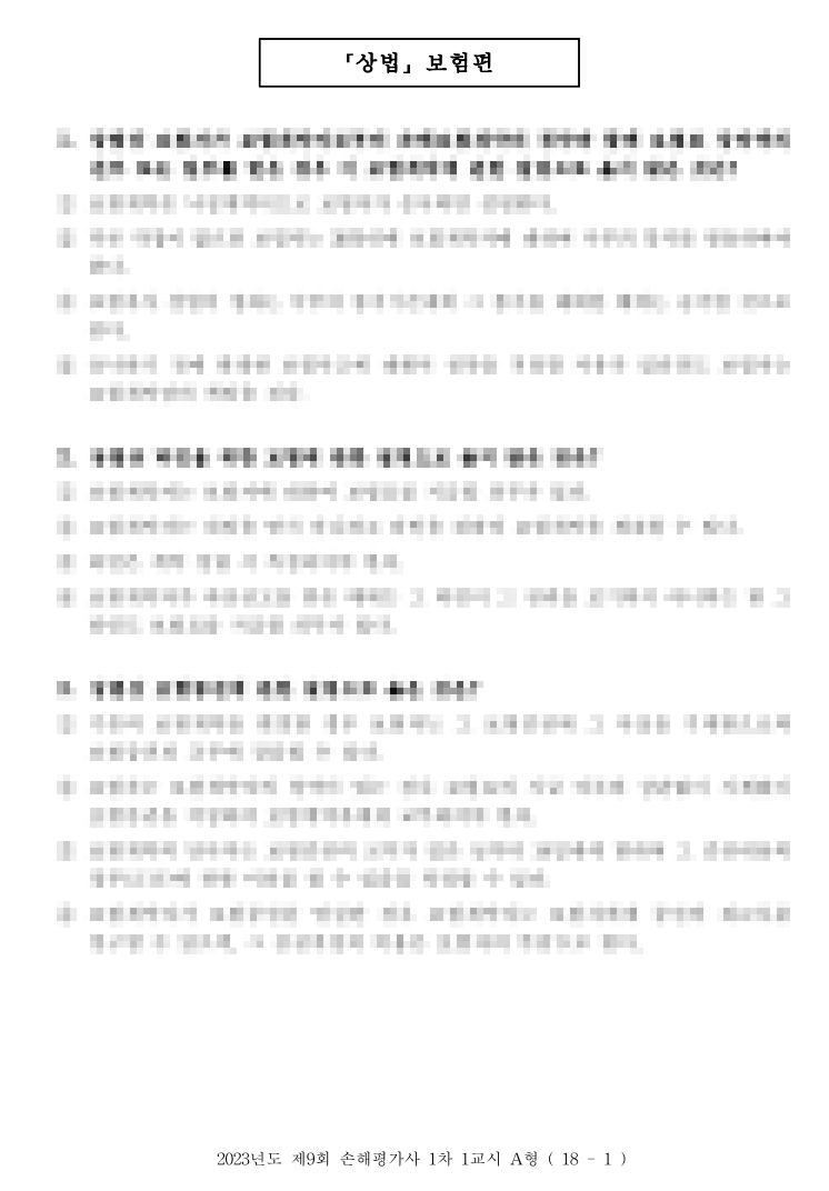 2023년 9회차 1차 시험 기출문제를 공유 드리도록 하겠습니다. 아래 해당하는 파일을 다운 받으시면 <상법> 보험편, 농어업재해보험법령, 농학개론 중 재배학 및 원예작물학에 대한 기출문제편을 볼 수 있습니다.