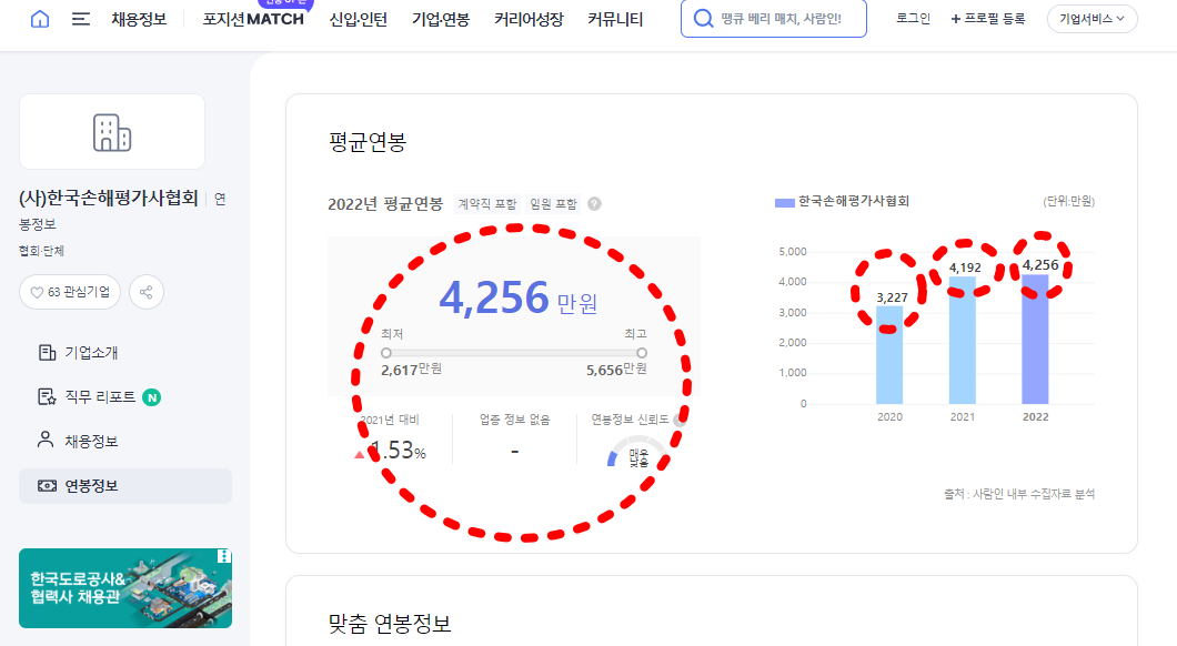 2024년 사람인을 통해 연봉정보를 확인하였을 때 아래와 같이 평균 연봉이 4256만원이라는 금액이 나옵니다. 한국손해평가사협회에 소속된 사람들에 대한 정보이기 때문에 프리랜서로 뛰시는 분들은 아마도 금액이 다를 것이라고 생각됩니다만손해평가사가 실제로 업무를 보는 여름과 가을철에만 일을 한다는 것을 가정하였을 때 높은 금액이라는 것을 알 수 있습니다.