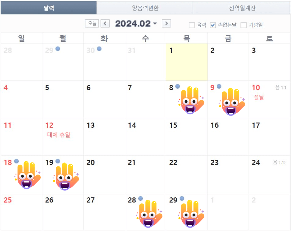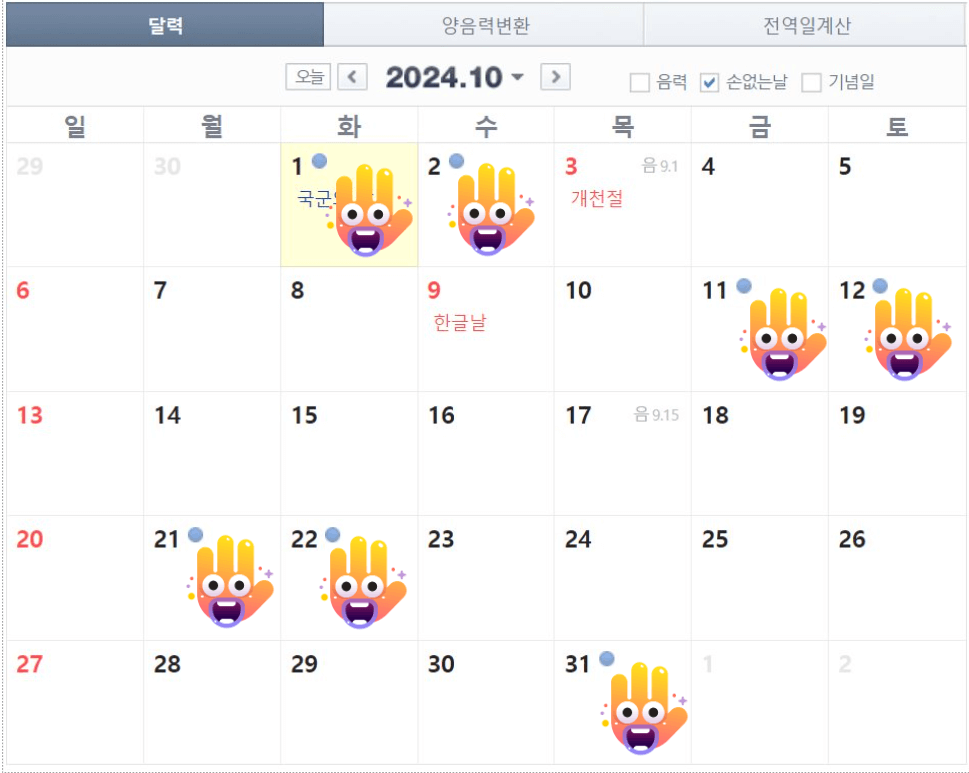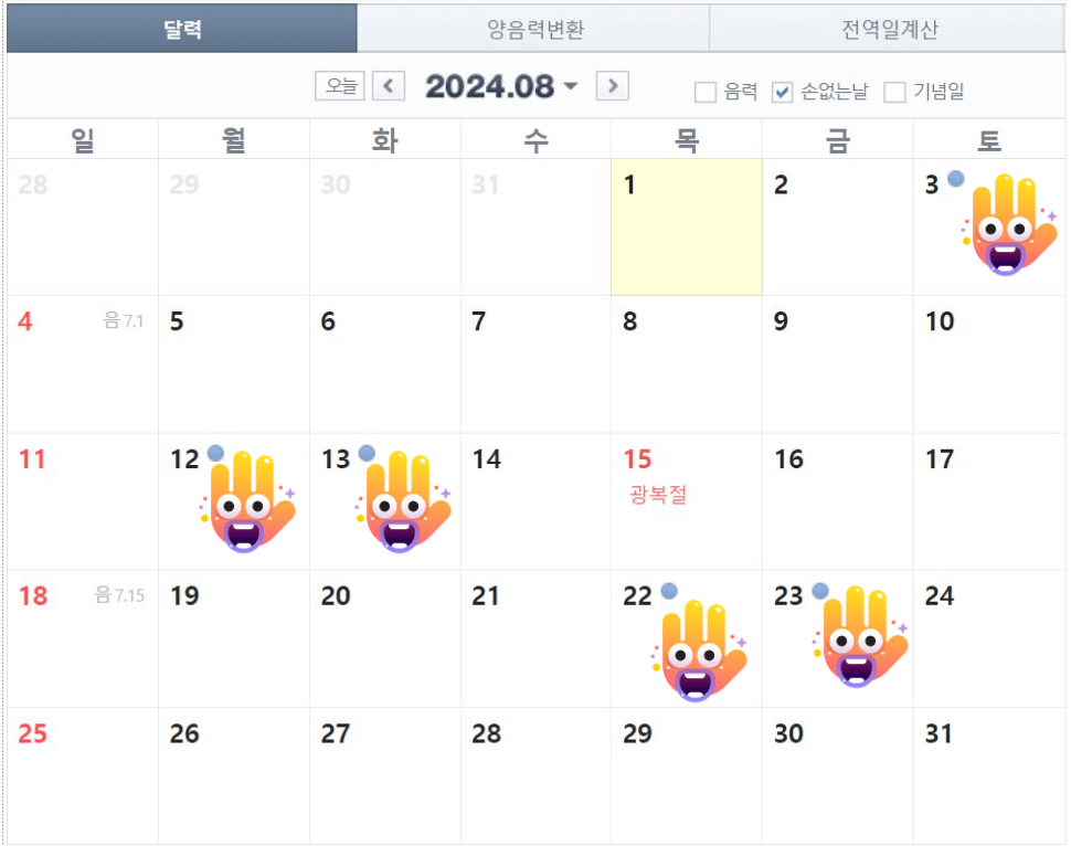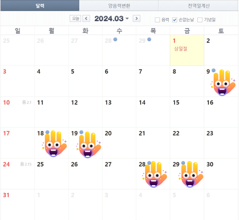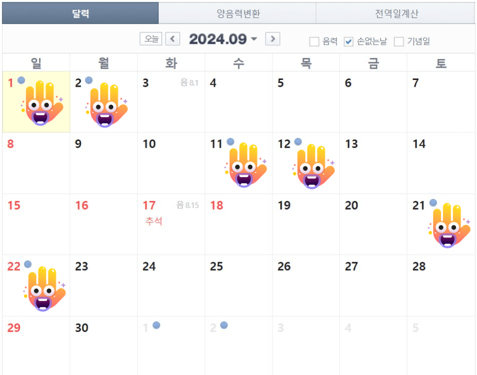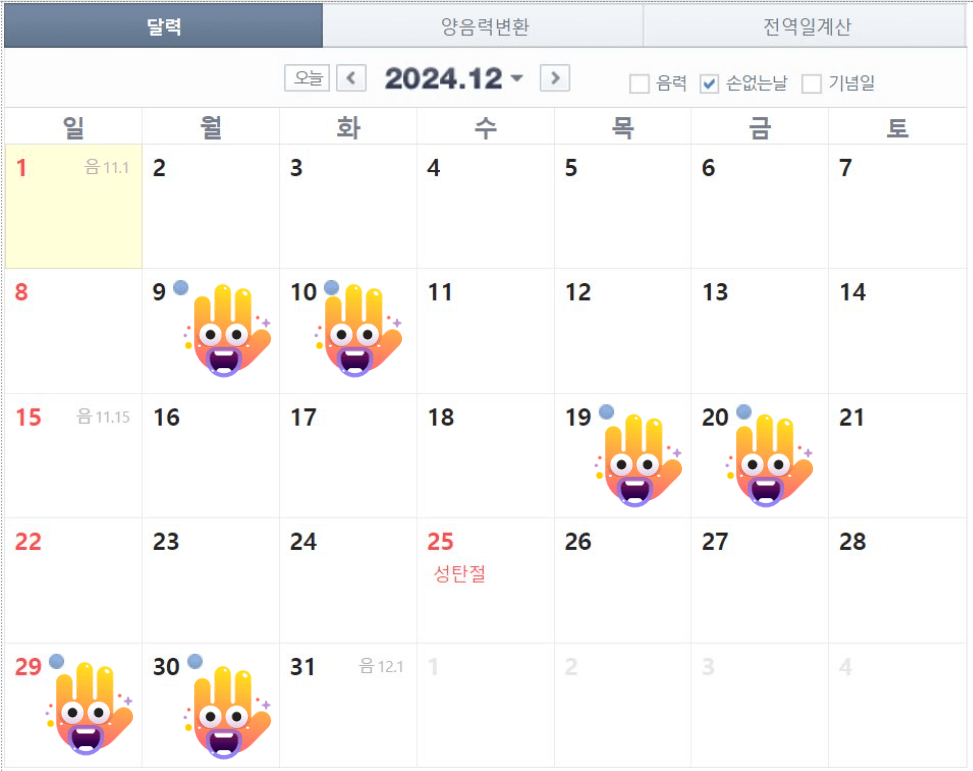 손 없는 날 확인하기 - 음력